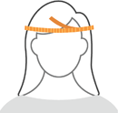 Messen Sie oberhalb der Augenbrauen rund um den Kopf.