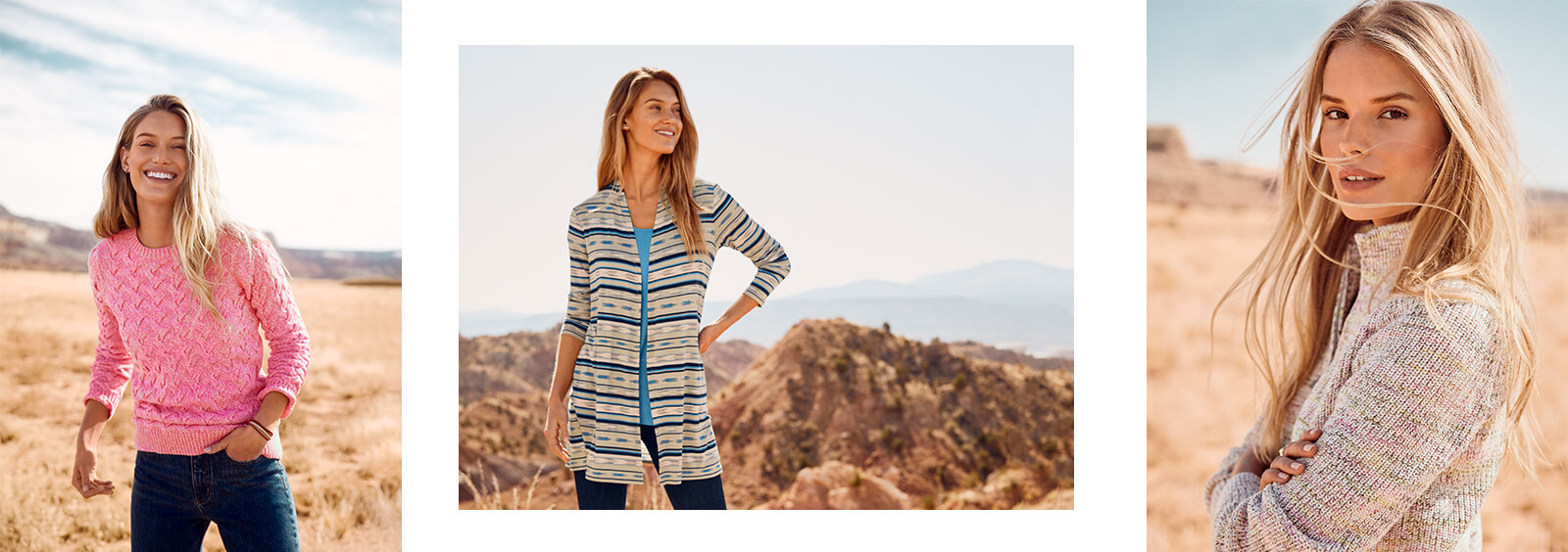 Etuikleider und Strickjacken